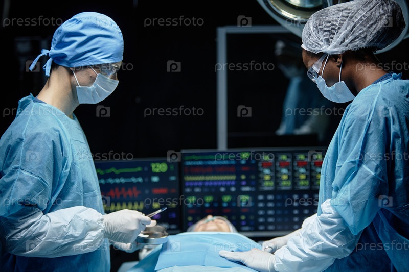 Хирург в операционном театре с синим светом