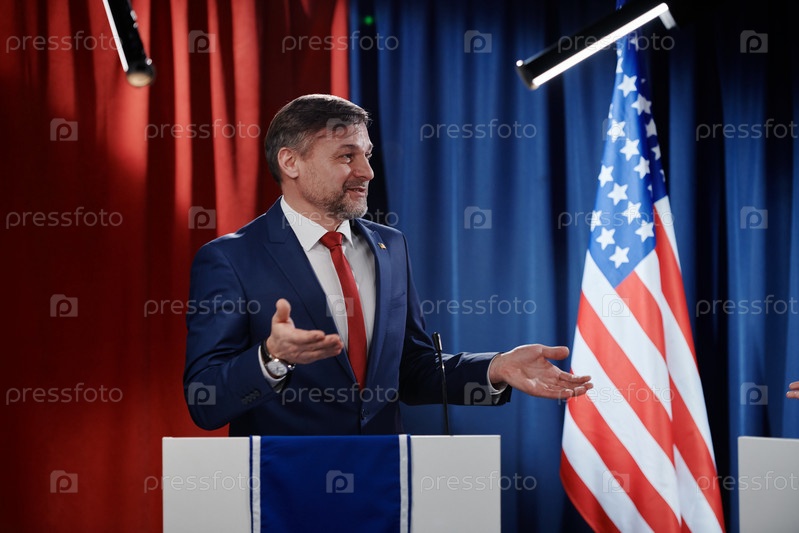 Человек, объясняющий свою точку зрения публике