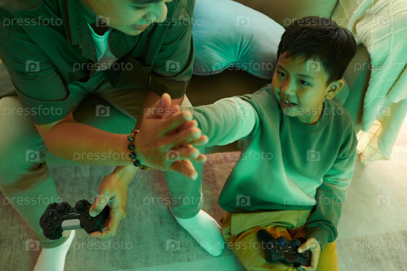 Отец и сын выигрывают видеоигра