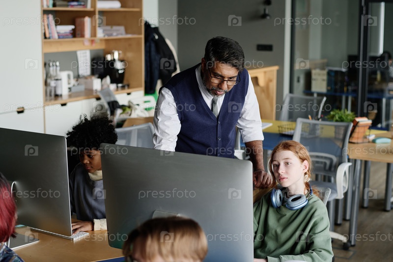 Учитель помогает девочке во время урока