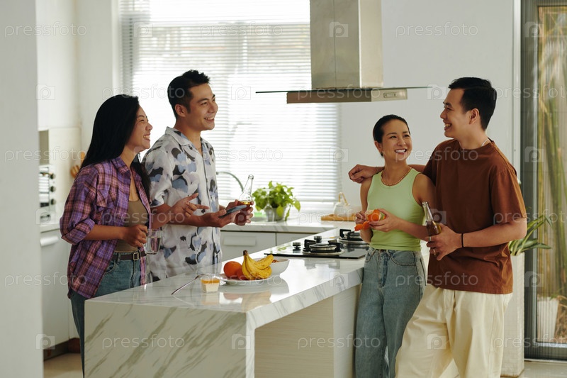 Улыбаясь и наслаждаясь напитками и закусками вместе