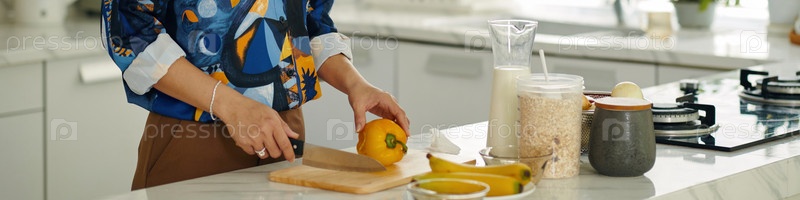 Женщина, режущая свежие овощи на кухне