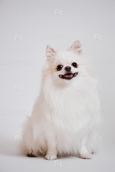 Милый Помераньян Счастлив на белом