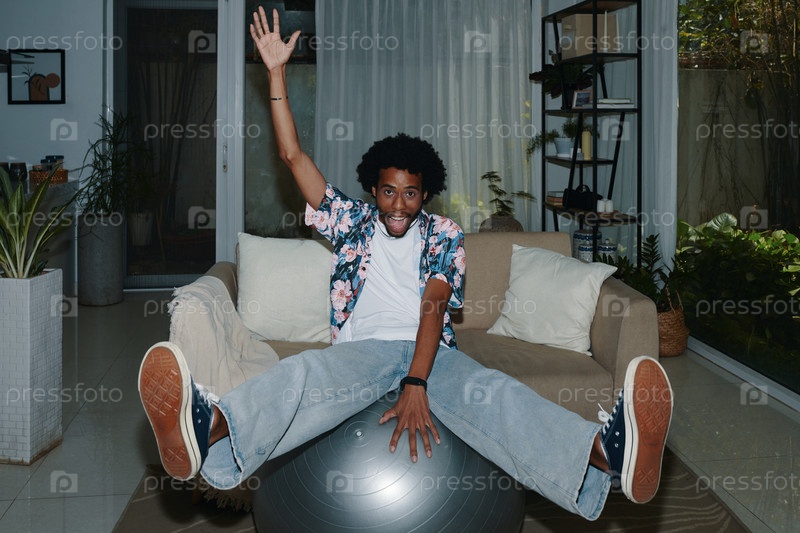 Сидящий на фитнес-бале Человек