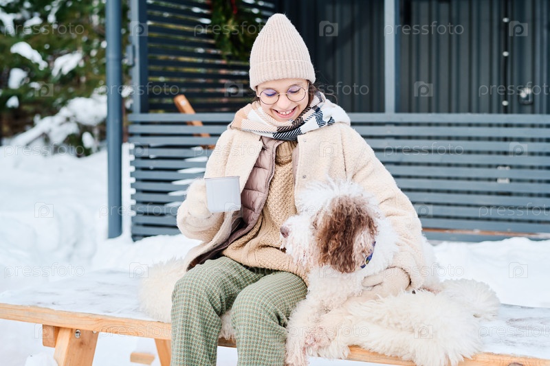 Девочка и ее собака в зимний день