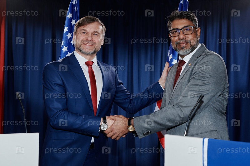 Мужчины, пожавшие руки перед камерой