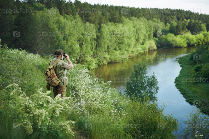 Непризнанный турист, использующий бинокль