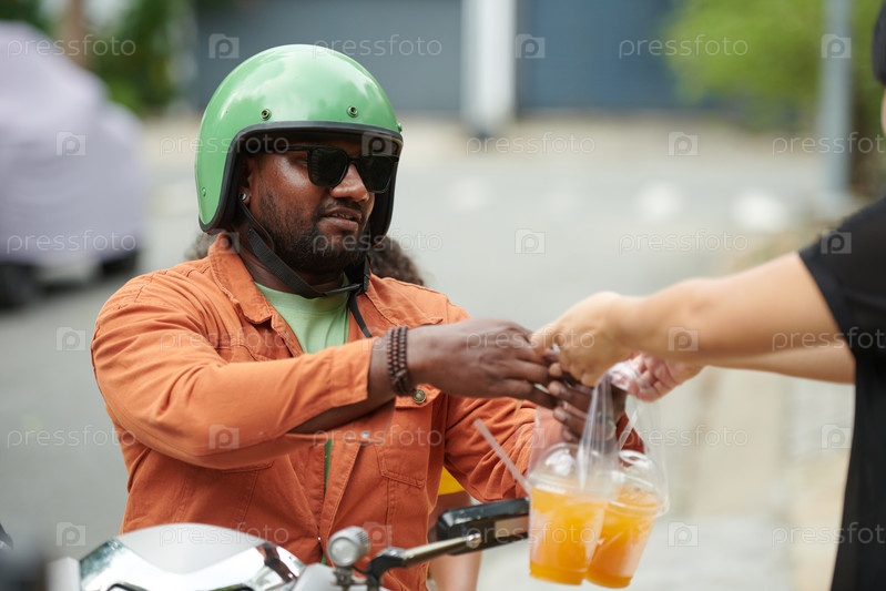 Молодой человек покупает два стакана сока