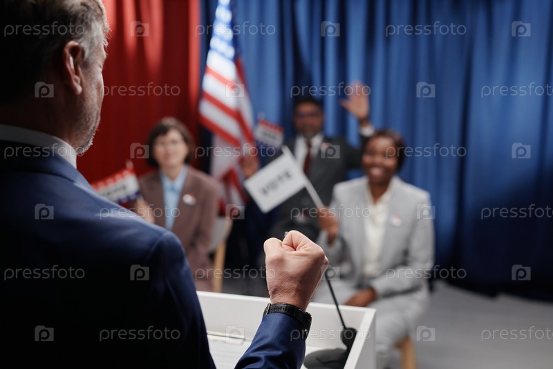 Политик, держащий удар над платформой