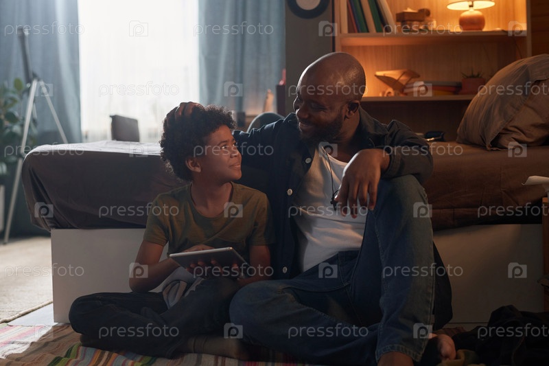 Счастливый родитель и ребенок сидят на полу