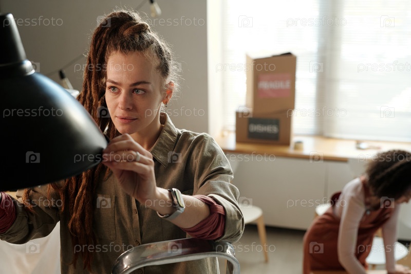Висящая лампа в кафе во время реставрации