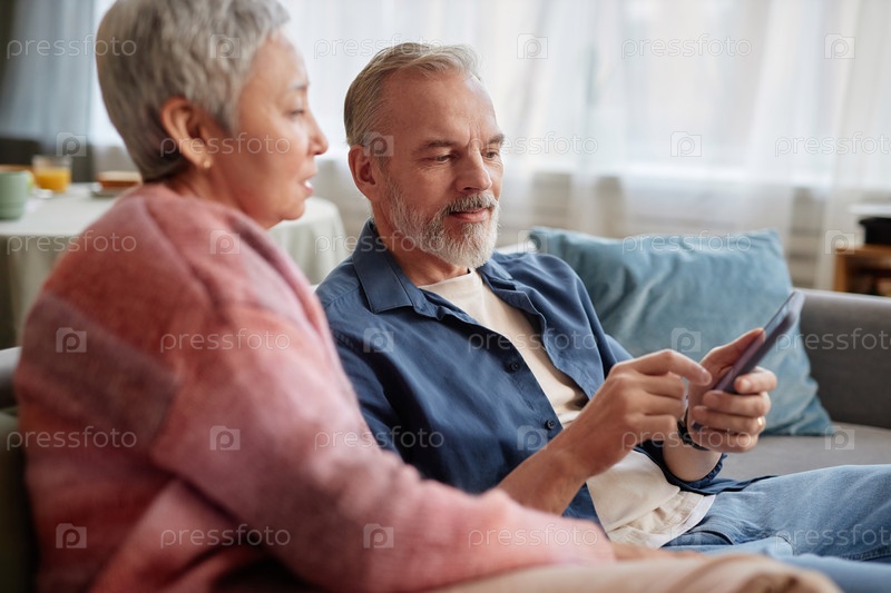 Пожилая пара использует мобильное приложение для онлайн-покупок
