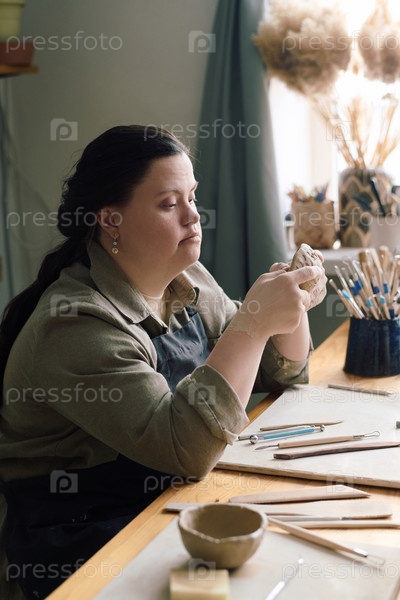 Ремесленник с инвалидностью, формирующий кусок глины