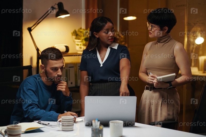 Группа бизнесменов, работающих на питч-деке