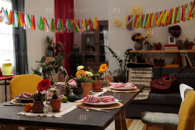 Сервируется праздничный стол в гостиной