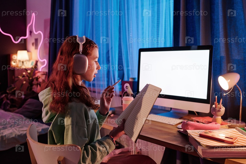 Девушка-подросток учится вечером