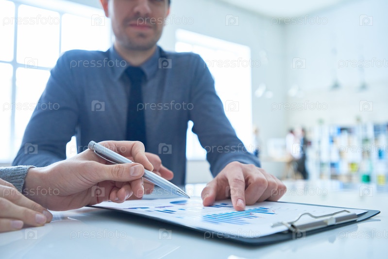 Бизнесмены, указывающие на графики