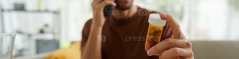 Пациент держит антидепрессантные таблетки