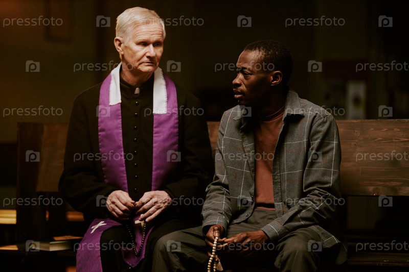 Черный человек разговаривает с католическим священником