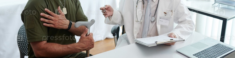 Солдат, проходящий консультацию с врачом