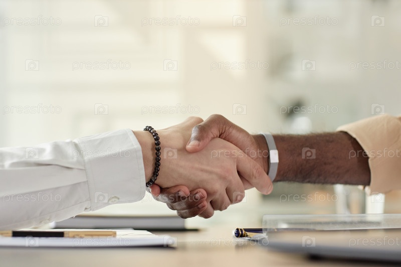 Руки в рукопожатии за столом заседания