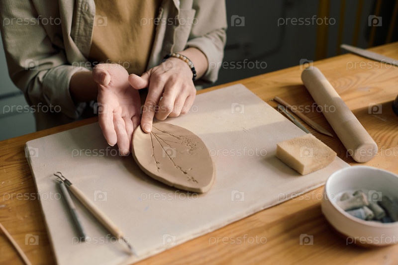 Непризнанная творческая женщина, делающая керамическую пластину
