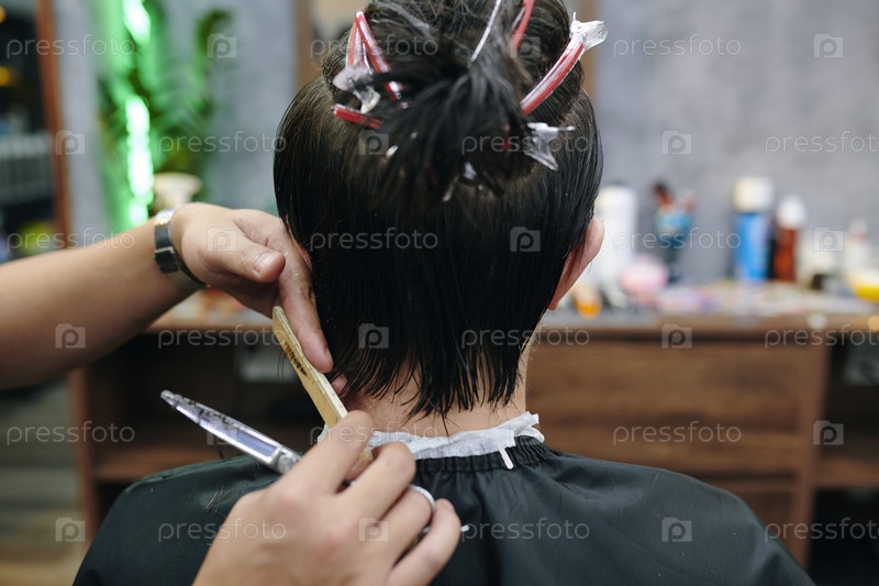 Барбер расчесывает секцию волос