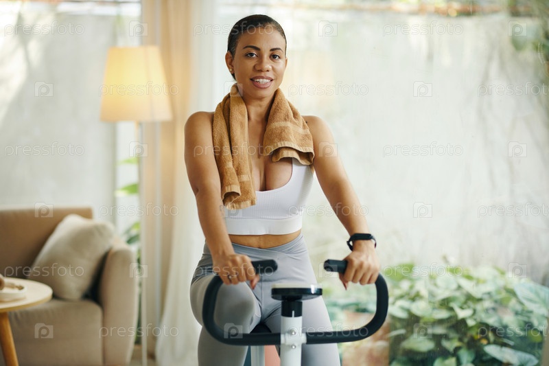 Женщина, отдыхающая на велосипеде для упражнений