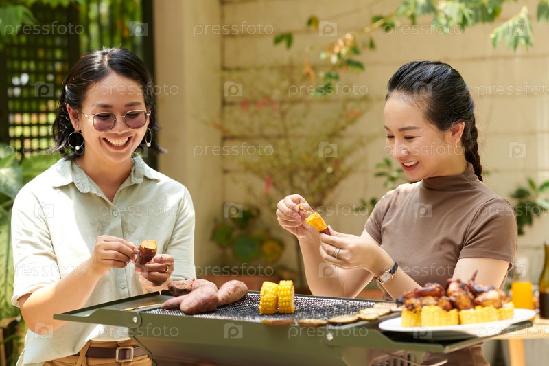 Друзья жарят овощи