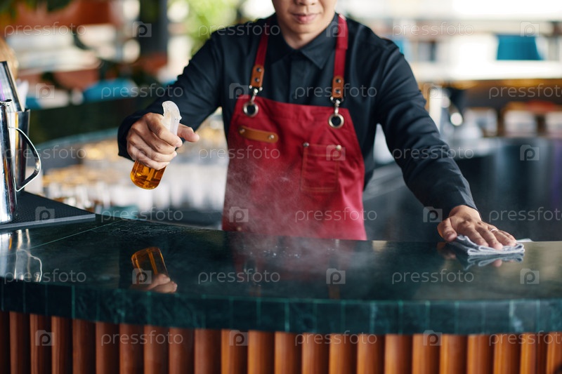 Официант убирает барную стойку