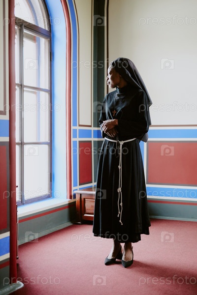 Молодая монахиня, глядящая из окна