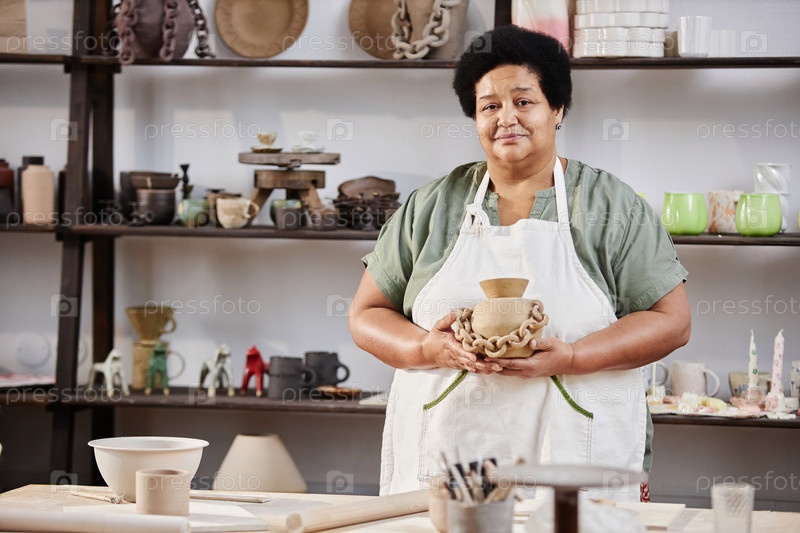 Чернокожая женщина наслаждается керамикой на пенсии