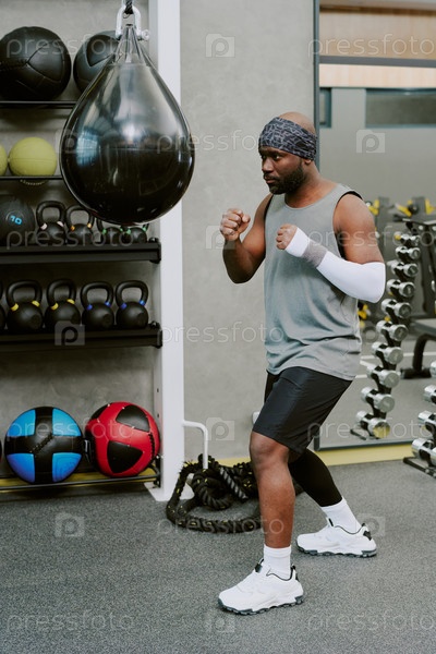 Молодой афроамериканский мужчина тренируется в спортзале