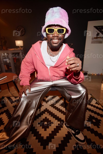 Чернокожий мужчина, носящий фанки-обувь с фотоаппаратом Flash