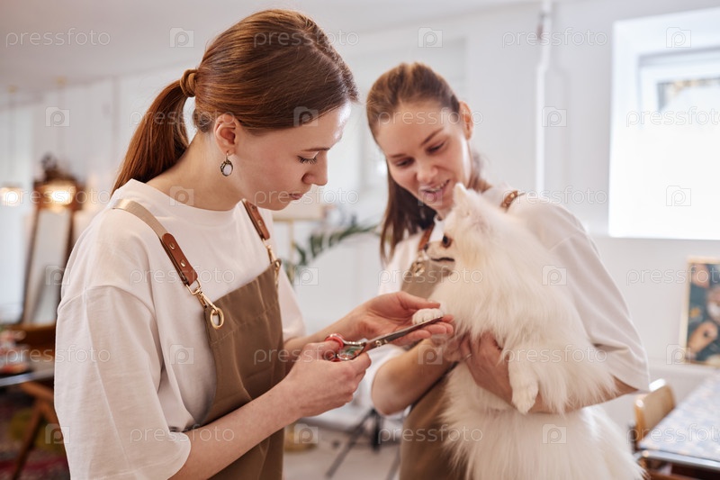 Groomer Caring Cute Pomeranian Dog Groomer заботливая милая собака из Померании