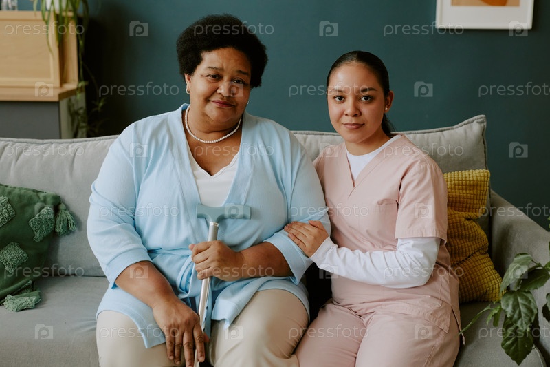 Молодая медсестра заботится о старшей женщине