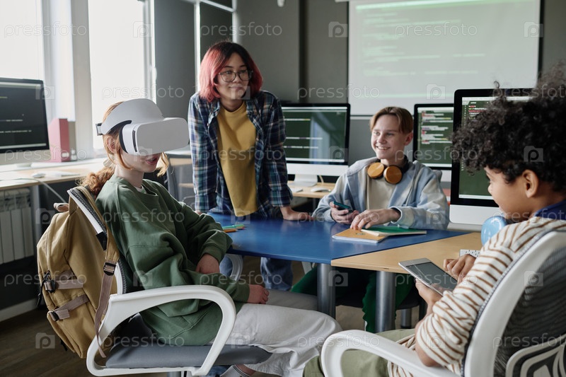 Группа подростков в классе по компьютерным наукам