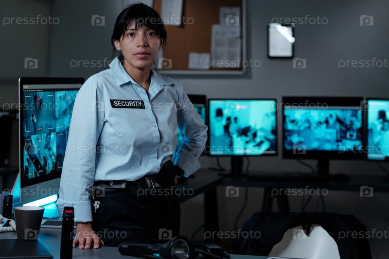 Молодая охранница в униформе