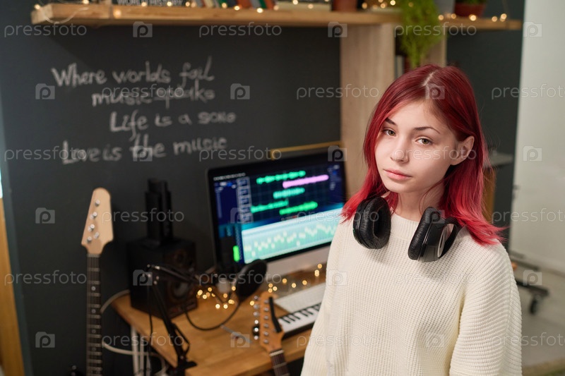 Милый тихий подросток с наушниками