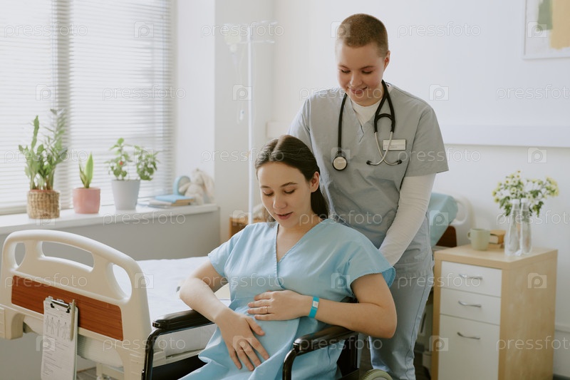 Медсестра утешает женщину в родах