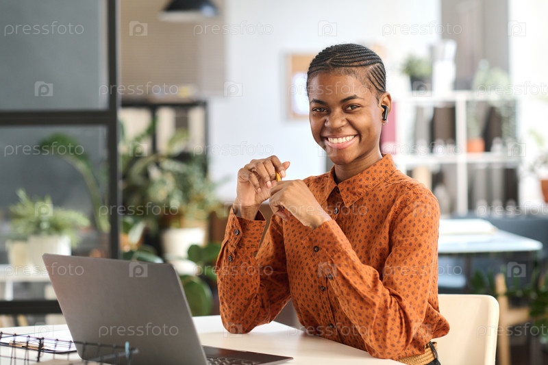 Черная молодая женщина на офисном рабочем месте