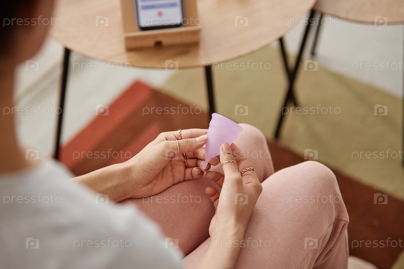 Top View Рука, удерживающая менструальную чашку