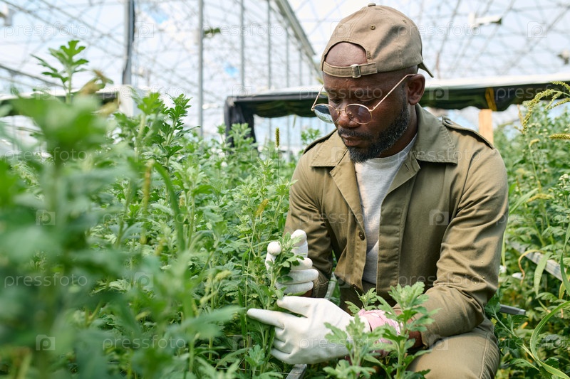 Заботливый садовник проверяет растения в теплице