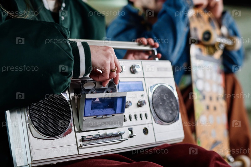 Непризнанная девушка кладет кассету в бумбокс