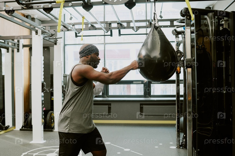 Мужчина-американец, бьющий скоростной мешок Африканский