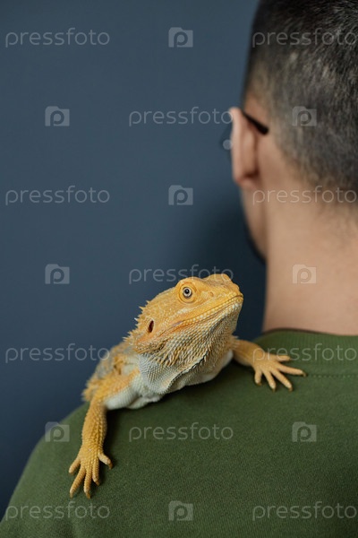 Тропическая игуана сидит на плече