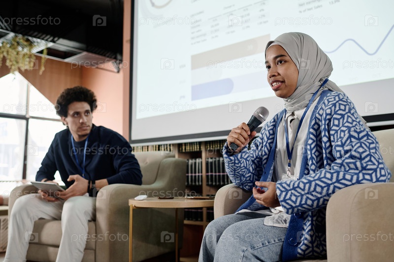 Студент, выступающий на конференции мусульман