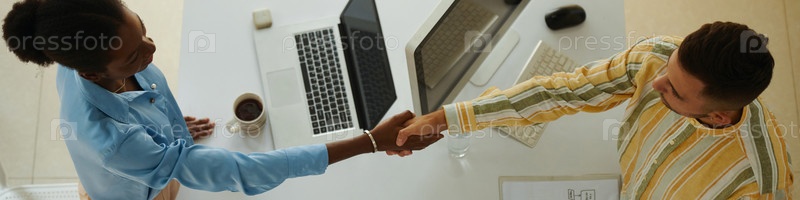 Коллега пожимает руку бизнесмену