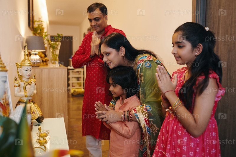 Семья молится вместе дома индийский