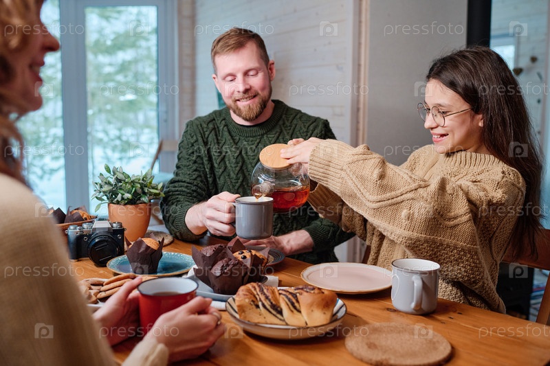 Семья проводит чаепитие вместе Современный